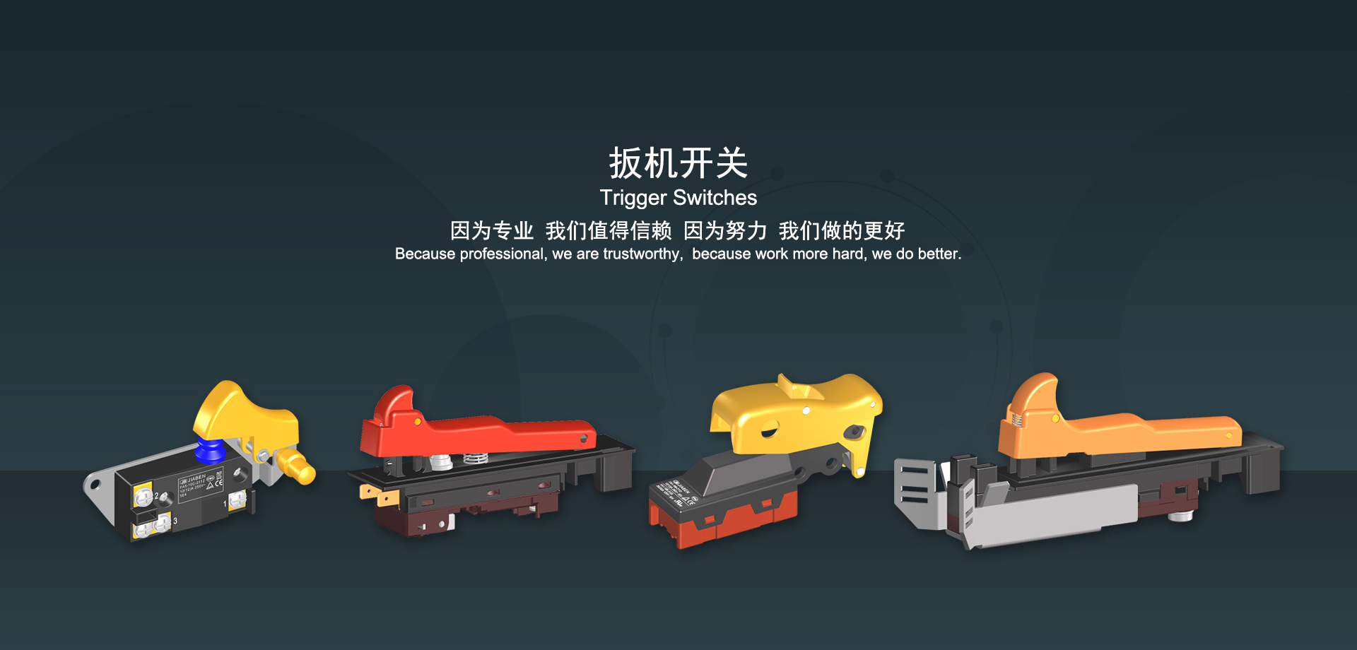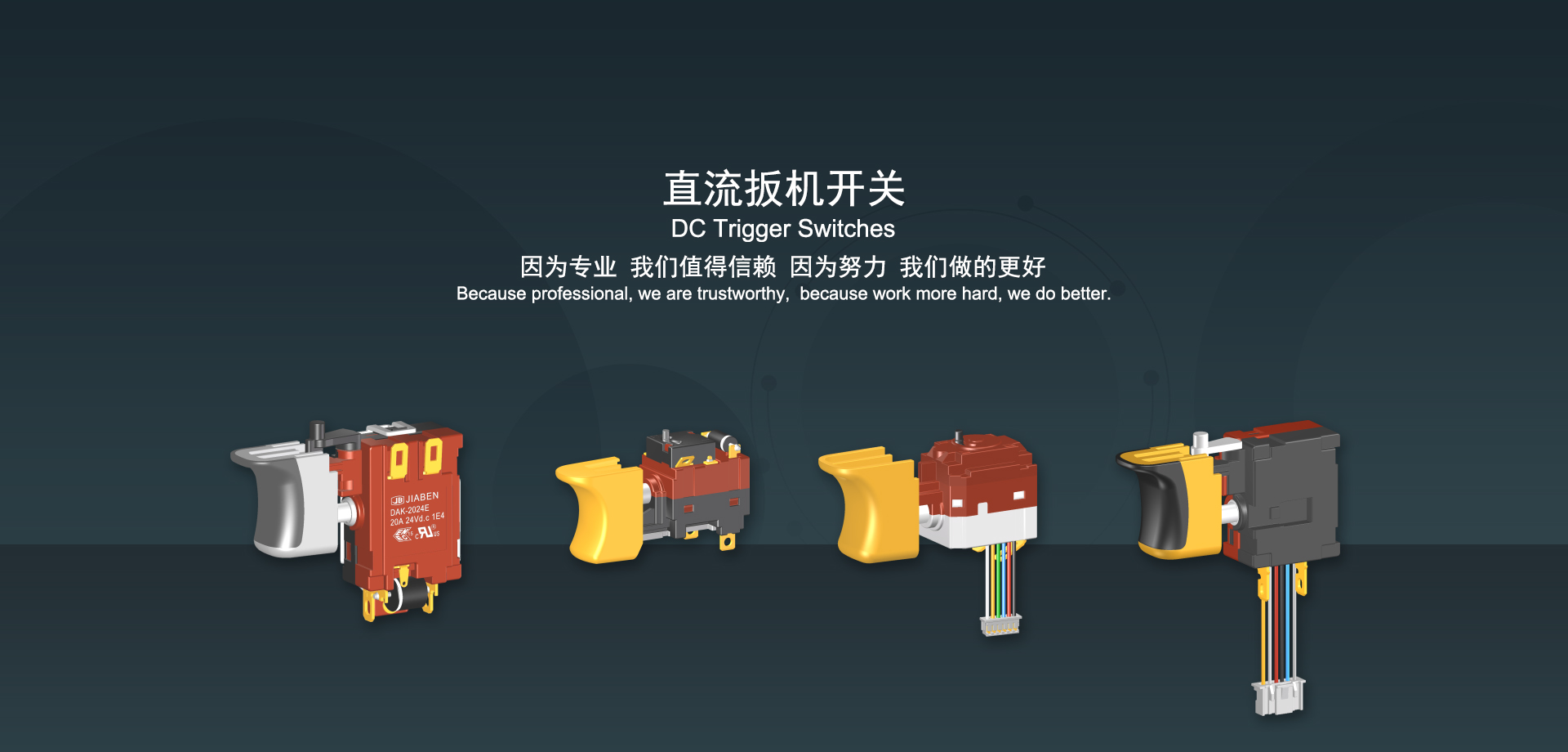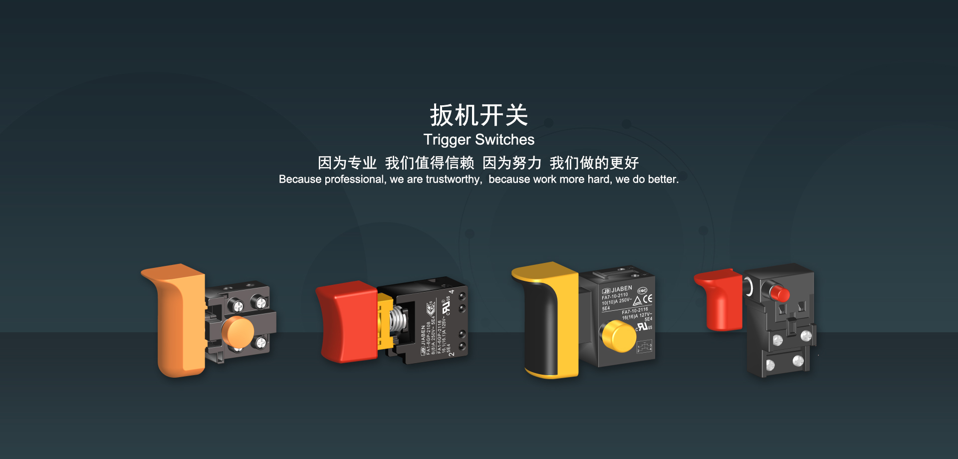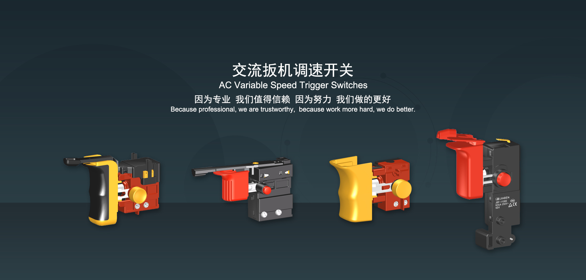 浙江佳奔電子有限公司始建于1986年,坐落于浙江省樂(lè)清市虹橋鎮(zhèn)東電子信息產(chǎn)業(yè)園內(nèi),現(xiàn)有職工700多人,資產(chǎn)總額超3億元。公司主要經(jīng)營(yíng)“JIABEN”牌微動(dòng)開(kāi)關(guān)、蹺板開(kāi)關(guān)、按鈕開(kāi)關(guān)、扳機(jī)開(kāi)關(guān)、調(diào)速開(kāi)關(guān)和電位器開(kāi)關(guān)等各類交、直流器具開(kāi)關(guān)和各類交、直流線路板模塊等產(chǎn)品,主要應(yīng)用于交、直流電動(dòng)工具、電動(dòng)園林工具、清潔器具、家用電器和小型機(jī)床等行業(yè),是集產(chǎn)品設(shè)計(jì)、研發(fā)、制造、銷售和服務(wù)于一體的國(guó)家高新技術(shù)企業(yè)。JIABEN was founded in 1986, located in East Electronic Information Industry Park, Hongqiao Town, Yueqing City, Zhejiang Proviance, existing staff more than 700 peoples, more than 300 million RMB worth of assets. Company is mainly engaged in "JIABEN" brand Micro Switch, Rocker Switch, Push-button Switch, Trigger Switch, Speed Regulating Switch, Potentiometer Switch and other kinds of appliance switch and all kinds of AC or DC circuit board module, such as more than 100 series, 8000 kinds of models of products, mainly used in AC or DC Power-tools, Power Gardening Tools, Cleaning Appliances, Household Appliances and Small Machine Tool and other industries, is the collection product design, research and development, manufacturing, sales and service in one of the national high and new technology enterprise.